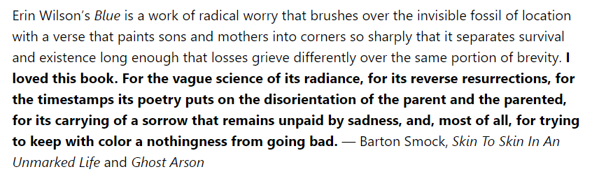 Pre-order Erin Wilson's Blue from Circling Rivers HERE Lovely, lovely book. Had and still have some words for it, here: