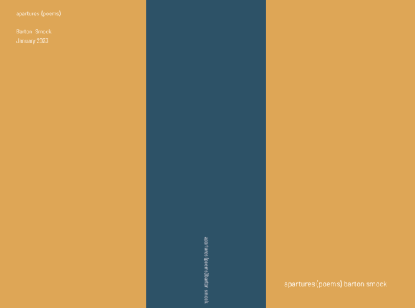 Have privately self published a new collection titled apartures Pocketbook style, 125 pages, January 2023 collection is pay what you want can be purchased via paypal (bartsmock@gmail.com) or Venmo: @Barton-Smock-2 or CashApp: $BartonSmock