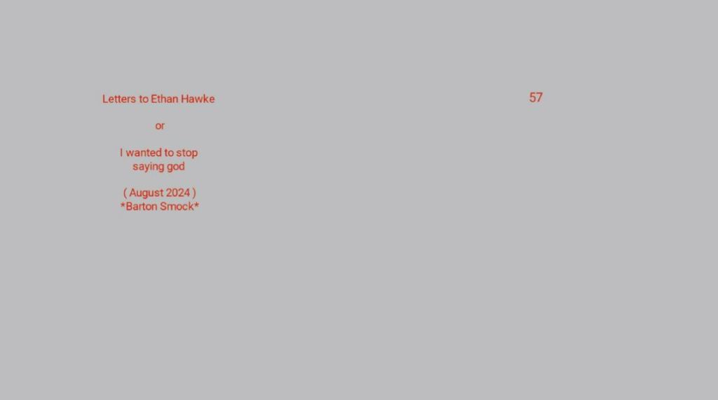 The first, 57 Letters to Ethan Hawke (or I wanted to stop saying god), is what the title claims.